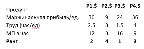 В целях максимизации прибыли какое ранжирование следует применить при производстве?