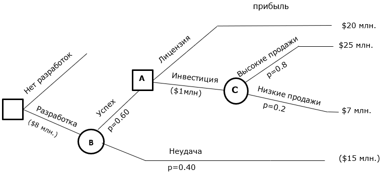 Компания готовит запуск нового продукта. Если запуск будет успешным в течение первого квартала, то появится возможность продолжить инвестиции в этот продукт или лицензировать будущие разработки другой компании.