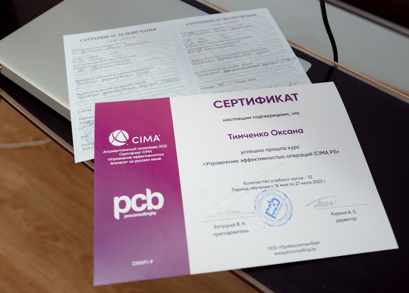 Выпускники курса “Управление эффективностью операций” (CIMA P1) получают сертификат ProConsulting с указанием периода обучения и количества учебных часов, а также сертификат об обучении государственного образца.